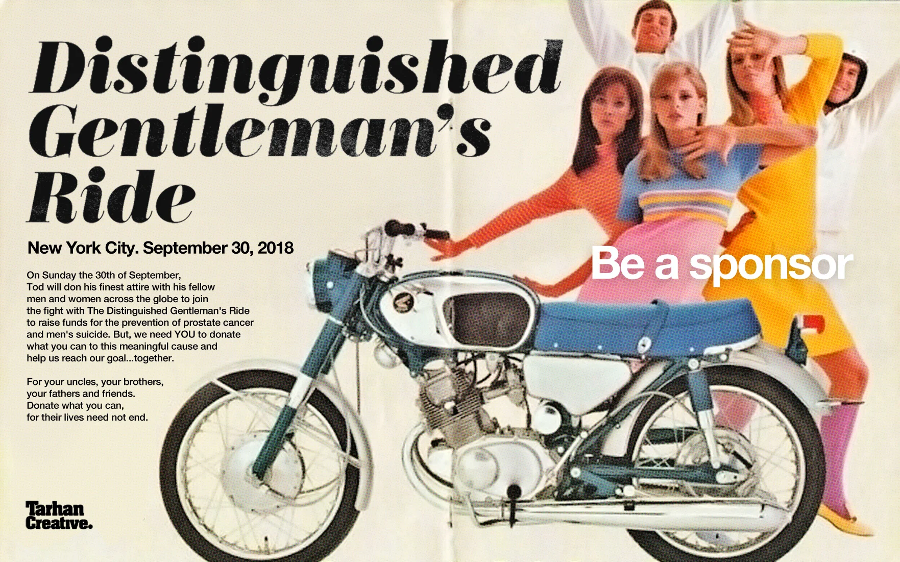 Another successful Distinguished Gentleman’s Ride! Tod made the fundraising-top-20-list out of 500+ riders in New York City. New York City came in 2nd after Mexico City in fundraising out of 100+ DGR cities around the world. We greatly appreciate the continued support for our efforts to raise funds and awareness for mens health issues